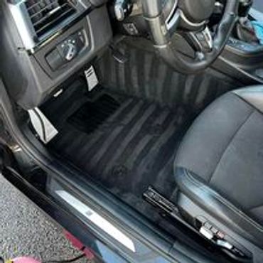 Pre vacuum, carpet shampoo with extraction (cloth seats included). Floor mats, if cloth, are also shampooed/extracted. All interior vinyl/plastic/leather surfaces are wiped down and dressed. Rubber mats cleaned and dressed. Door jambs and windows cleaned inside/out. Exterior wash with tire shine included.